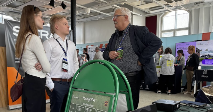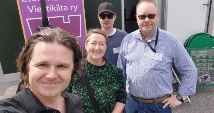 Iloisia vieraita, Hanna Holopainen ja Andrei Sergejeff, MobiJOPAn messupisteellä. Taustalla myhäilen poikani Mikaelin kanssa.