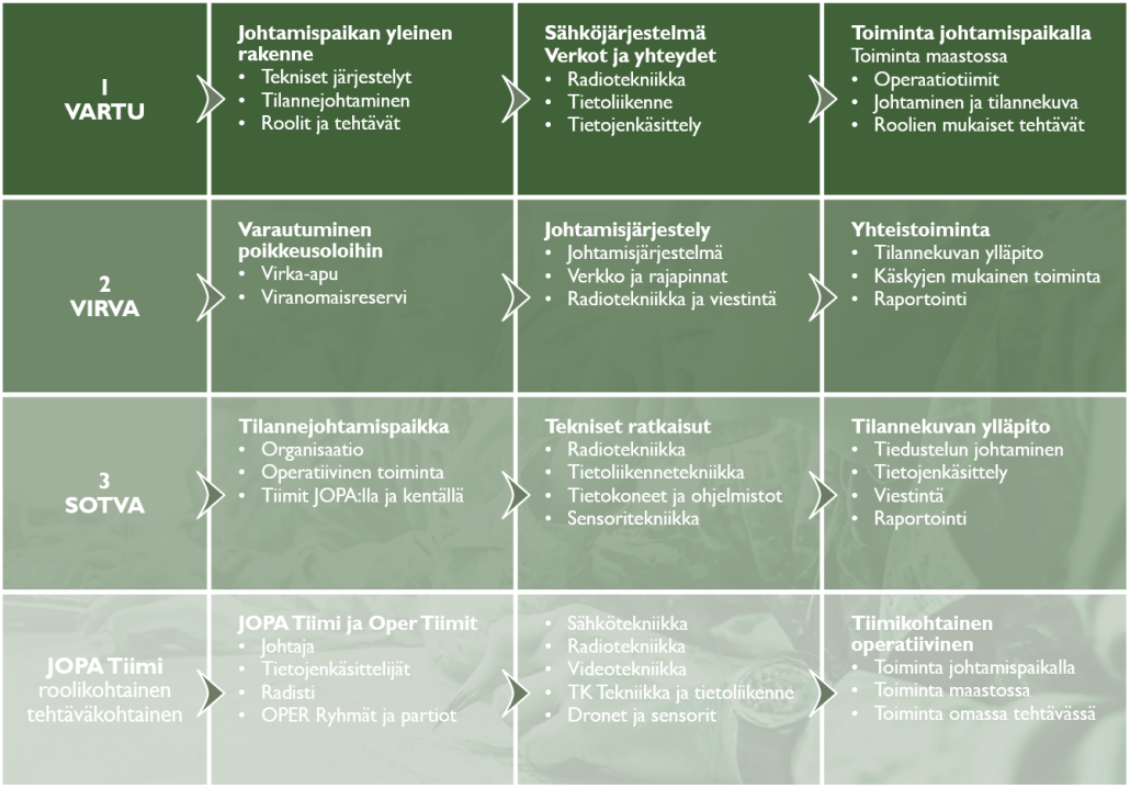 • Yleinen toiminta johtamispaikalla ja valmiuskeskuksessa